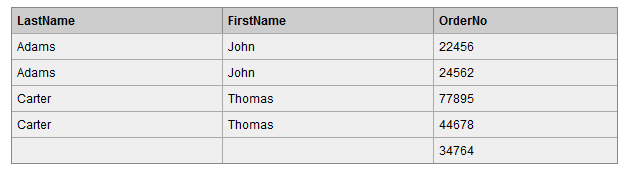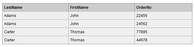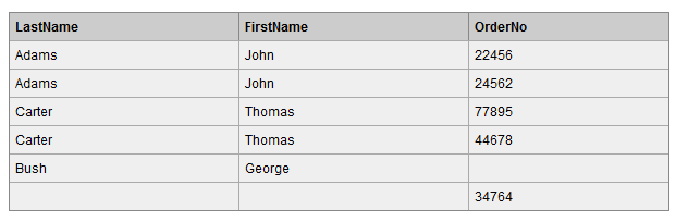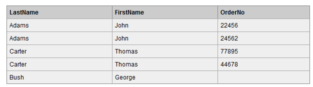 SELECT p.LastName, p.FirstName, o.OrderNo