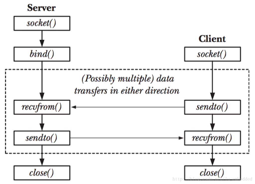 而对于 UDP 来说,就比较简单了,因为它是一种无连接的数据报套接字,实际上,客户/服务端的概念也弱化了。