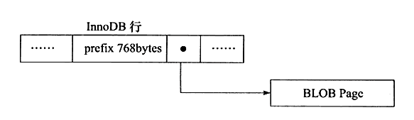 新的两种行记录格式对于存放在BLOB中的数据采用了完全的行溢出方式,在数据页中只存放20个字节的指针,实际的数据都存放子页OffPage中。而之前的两种行记录格式都是会存放768个前缀字节。新的行溢出方式如下: