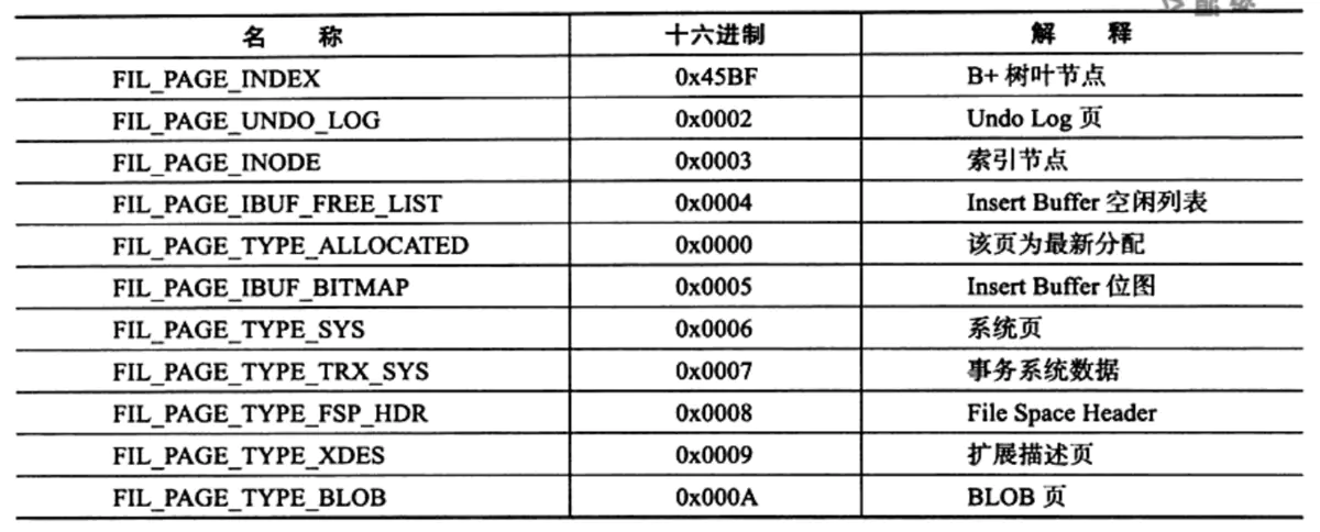 在InnoDB存储引擎中,常见的页类型有:
