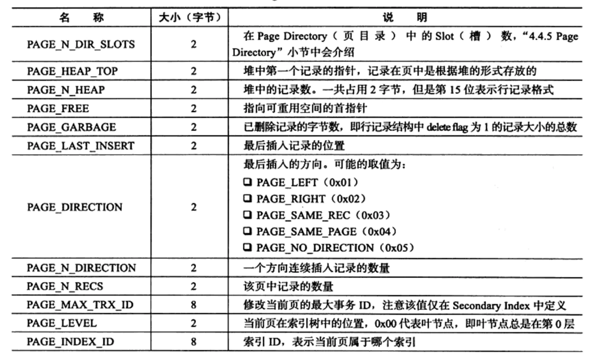 该部分用来记录数据页的状态信息,由14个部分组成,共56字节: